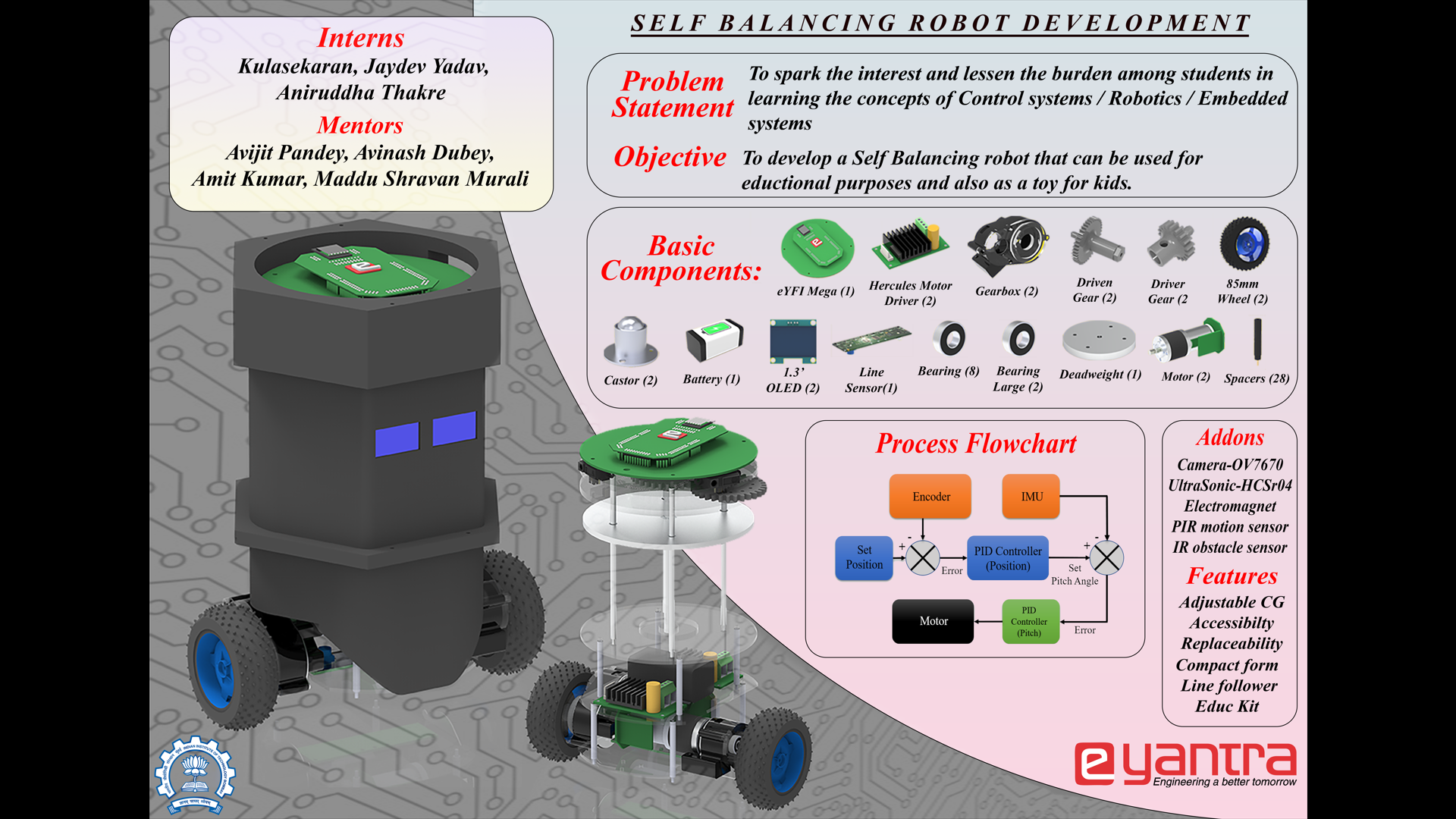 - Aim : To develop a Self-Balancing robot that can serve as a toy as well as an educational product to students of science and engineering
